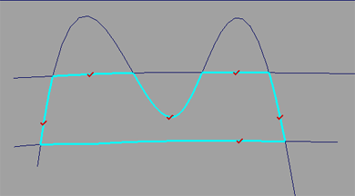 Small check marks show the points where you clicked. A thick line marks the outline of the shape defined so far.