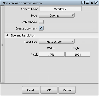 The new canvas appears in a special Paint window, on top of the regular view windows, ready for sketching, just as when using Canvas > New Canvas