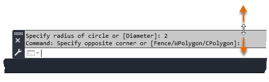 Dock the Command Window – Click and hold the mouse button over the grip on the left edge of the command window and drag the window to a new location at the top or bottom edge of the drawing window. Release the mouse button when the command window arrives.
