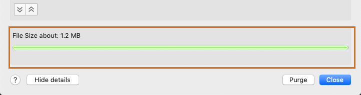 After selecting items for purging and clicking Purge, the actual amount cleaned up and the amount that still can be purged are shown.
