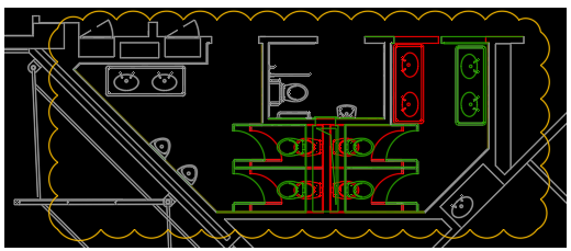 During the comparison process, DWG Compare feature identifies objects that have been modified, added, or removed from the two drawings. The result displays in a new drawing, in a new tab, called the comparison drawing. The name of the comparison drawing is a combination of the file names of the compared drawings, Compare_filename1 vs filename2.dwg. In the comparison drawing, the differences are highlighted as change sets, using revision clouds.