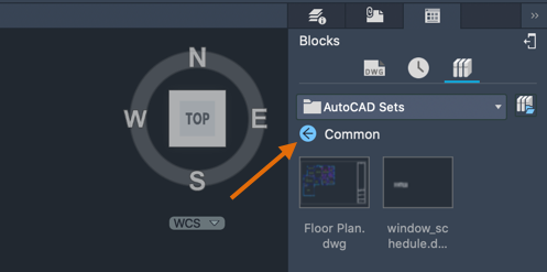 Folders within the selected folder are now displayed on the Blocks palette. Double-click a folder to display the drawings or folders within that folder.