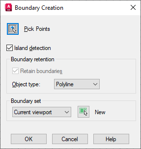 Controls the type of the new boundary object. BOUNDARY creates the boundary as a region or a polyline object.