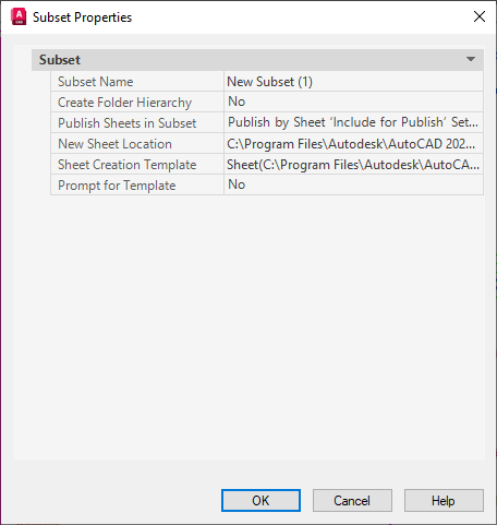 This setting is not based on the subset name or hierarchy, but it creates folders to match the "New Sheet Location" property specified in the subset. If the folder specified is different than the sheet set root location, a new folder is created.