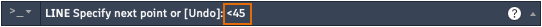 If you need to draw a line at a specified angle, you can lock the angle for the next point. For example, if the second point of a line needs to be created at a 45 degree angle, you would enter <45 in the Command window.