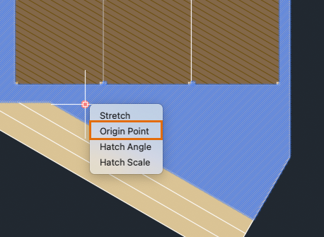 If you need to align the pattern in a hatch, which might be the case with the decking boards above, hover over the hatch's origin grip, and select Origin Point to specify an alignment point.