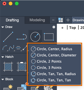 Alternatively, you can also enter CIRCLE or just C in the Command window and specify an option.