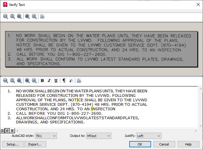 Verify Text window where you can make the necessary corrections and then enter the new text into the drawing.