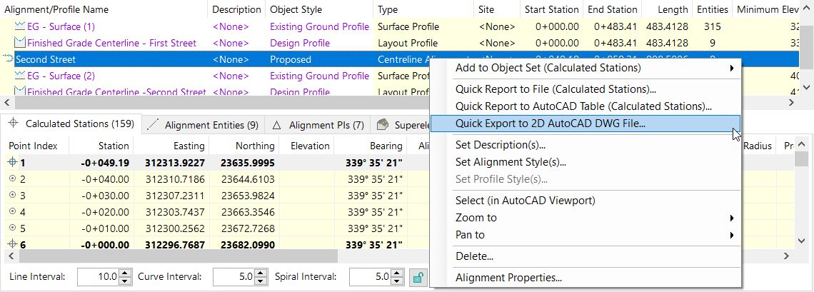 All Civil 3Dcontent which is supported by Project Explorer can be exported to AutoCAD DWG files. Here's an overview of what to expect in the exported drawing for some specific Civil 3D object types: