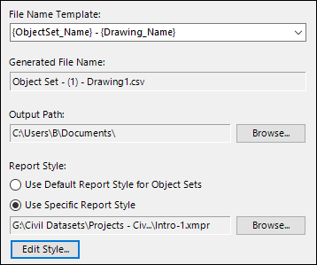 A report style is required to define the page size, page orientation, page margins, report header, page header and page footer settings for the generated report or spreadsheet. Click the Browse button to select a previously created Report Style from a file to apply to the generated report or spreadsheet. Alternatively, click the Edit Style button to edit or define a style to use.