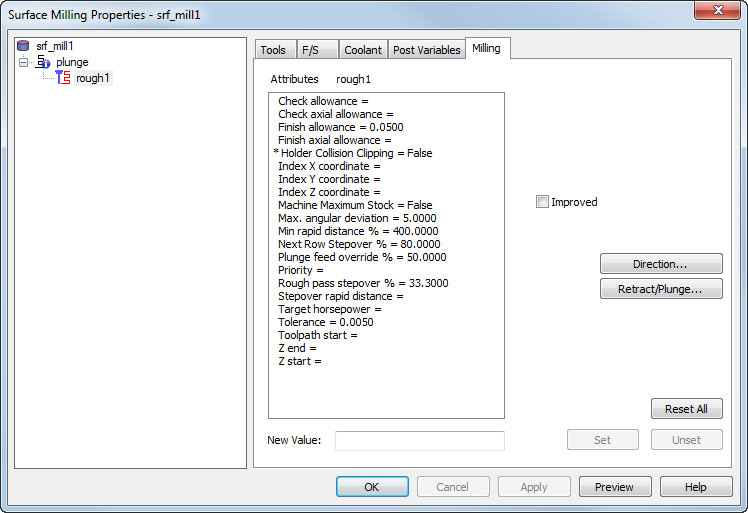 Tolerance — This attribute controls how accurately the toolpath follows the surface. If your part appears faceted, set the tolerance to a lower value.