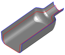 In the following example, the part boundary (red) is smooth, but the tool offset (blue) is rough. Decrease the Offset boundary tolerance for a smoother tool offset: