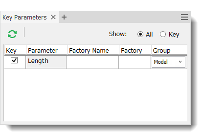 - The Key Parameters dialog box displays showing the Length key parameter previously defined. The check box to the right of the parameter name should be checked.