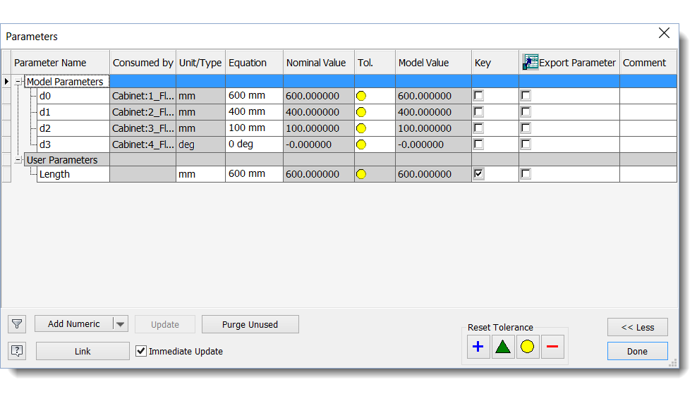 - Observe that the length, width, and thickness dimensions are represented by the d0, d1, and d2 Model Parameters, respectively.