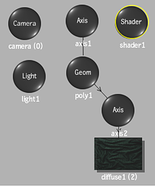 A shader is added to the scene. If you select a surface or 3D geometry in the scene before adding the Shader node, a shader inclusion link is automatically applied. You can also apply inclusion and exclusion links manually. See Applying a Selective Shader.