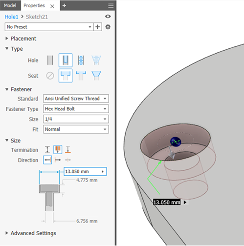 The new Hole command is faster and smarter by inferring hole placement from your interactions. You can apply dimensional and concentric constraints without first creating a sketch. Then, switch between feature editing and sketch editing without exiting the command.