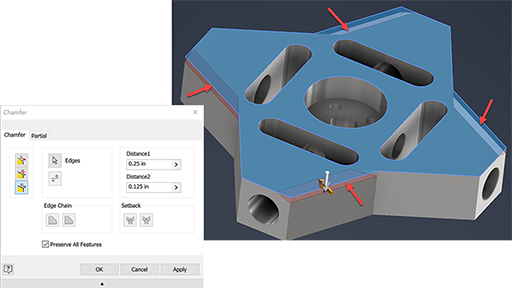 For more information about Chamfers see To Create Chamfers and Partial Chamfers.