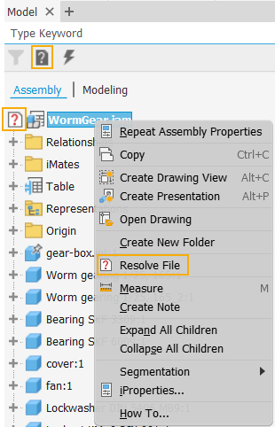 For more information on resolving files, see To Resolve Skipped Components in Part and Assembly Files.