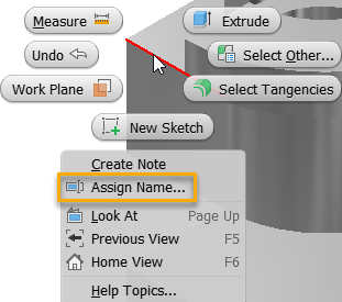 - In a part file, right-click on the geometry that is or will be constrained to another part, and select Assign Name.