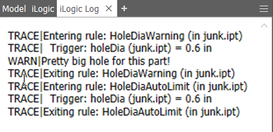 iLogic Logging uses iLogic functions to send log messages to the iLogic Log panel.