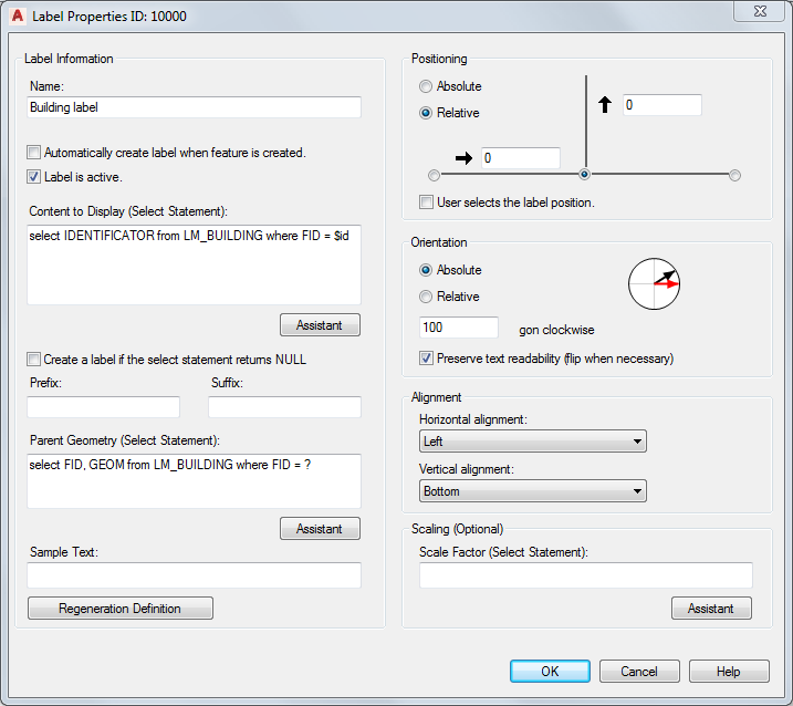 Label properties define how the label text is selected from the database and how the label is positioned.