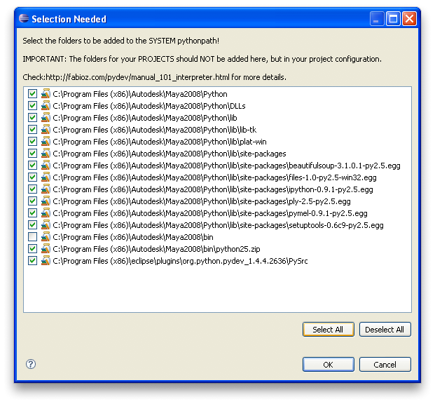- Click the “New Folder” button again, and add the site-packages directory you removed earlier. We did this in order to ensure that the stub maya package is found before the real maya package. When you’re done, the main site-packages directory should be somewhere below the extras/completion/py folder you just added.