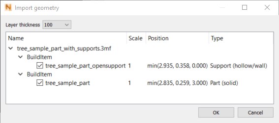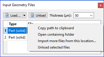 Geometry files can be imported and removed from the buildstyle project. While loading geometry files, you must choose one of the buildstyle’s supported layer thicknesses which is then used for all buildstyle operations within the project.