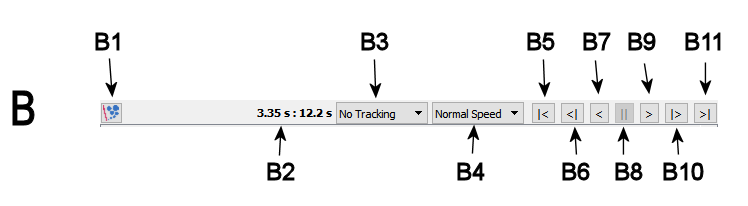 Change the current position on the timeline by clicking on the timeline in area C or D.