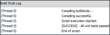 The test result is displayed in both the command interface and in the Build Style Log window.