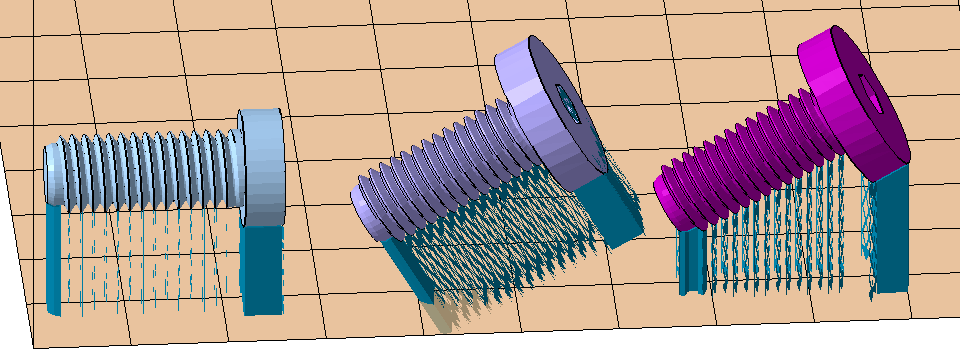 Three stages of rerunning support actions: Original, rotated and extruded part, reapplied supports.