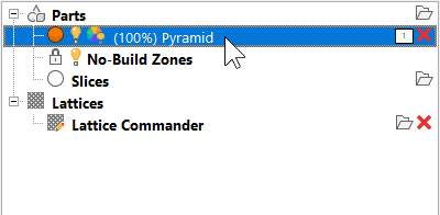 2. In the project tree, click and hold the part to drag & drop it under Lattice Commander.