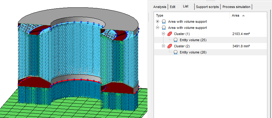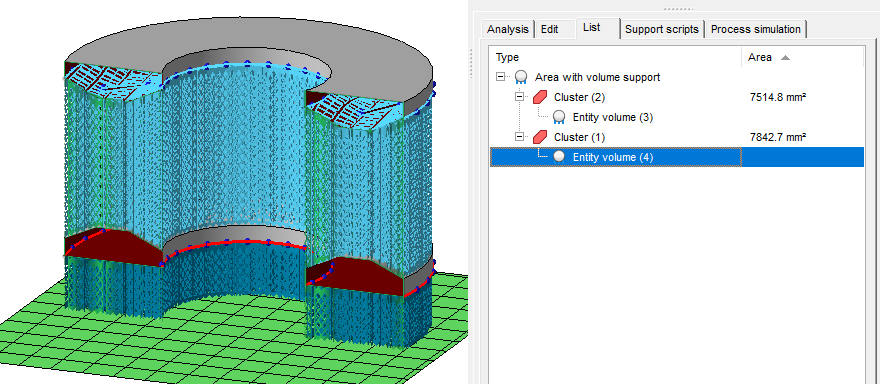 To measure surface area we use the support editor as we are only interested in downskins and since we need to create supports on clusters anyway. There is also a way to measure surface area in repair, but this is not part of this tutorial.