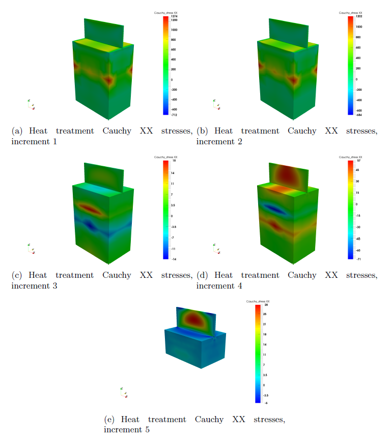 Figure 4 shows the modeled stresses at different increments during the heat treatment simulation.