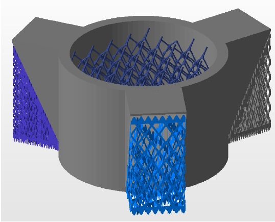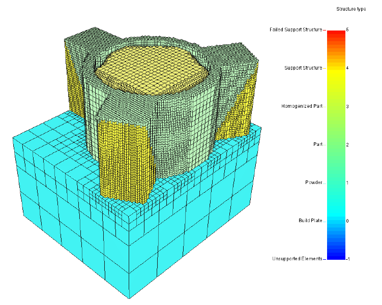 Figure 2 shows the mesh and the structure type of the part. Observe the homogenization of the lattice and support structures.