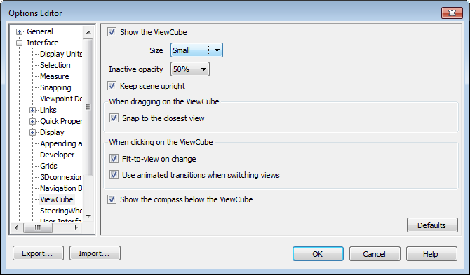 When checked, transitions from one view to another appear animated when clicking a predefined area on the ViewCube tool.