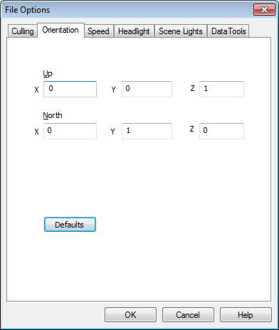 In the File Options dialog box > Orientation tab, enter the required values to adjust the model orientation.