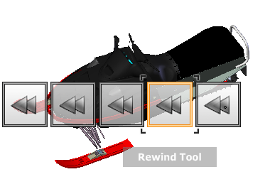 Dragging to the left restores an older previous view. Dragging to the right restores a view that is newer than the one you are currently viewing. You must have previously used the Rewind tool to see views available on the right. The current position in the navigation history is indicated by the orange box that is dragged along the Rewind History panel.