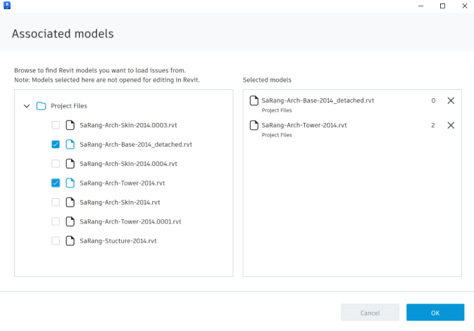 - Expand the folder structure to find the Revit (.rvt) files that you want to associate with the currently open file.