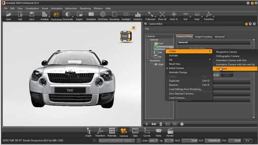 For reference information on the VRED camera tools, see the Reference Cameras section.