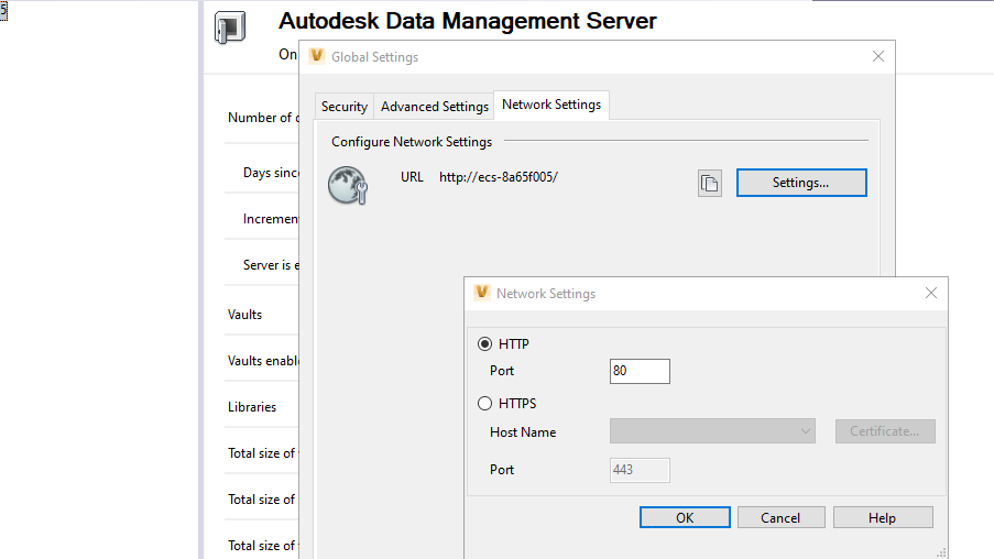 Configure the secure connection between the Vault client and the Vault server through the Autodesk Data Management Server (ADMS) console.