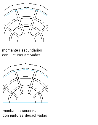 Especificación de centros abiertos y cerrados de montantes secundarios en forma de sol