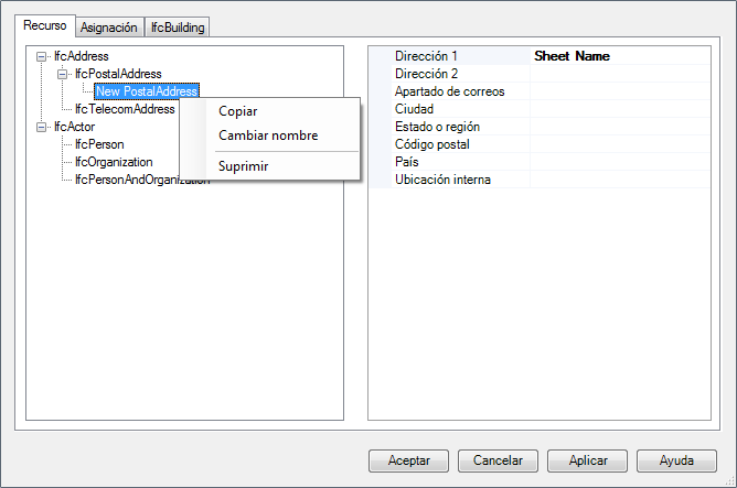 En la ficha Asignación y recurso IFC del cuadro de diálogo, seleccione la instancia del recurso IFC que desea modificar.