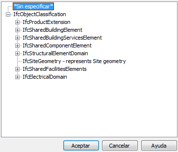 Definiciones de clasificación y seleccione IfcObjectClassification.