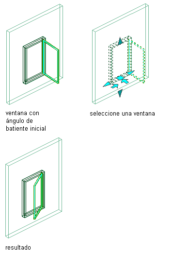 Utilice este procedimiento para cambiar el ángulo de batiente o porcentaje de hueco de una ventana o grupo de ventanas.