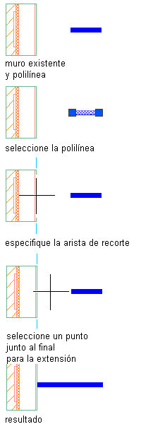 Utilice este procedimiento para alargar uno o más arcos, líneas o polilíneas abiertas de forma precisa hacia un borde concreto de un segmento recto o arqueado de cualquier objeto, o hacia una extensión de dicho segmento.
