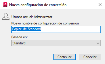 Seleccione una configuración de conversión existente para que sirva de base a la nueva configuración que va a crear.