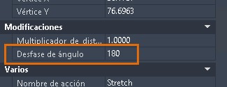 Establezca el valor de Desfase de ángulo en 180 en la paleta Propiedades. Esto permitirá que los objetos seleccionados se estiren en la dirección opuesta al arrastrar el pinzamiento lineal.