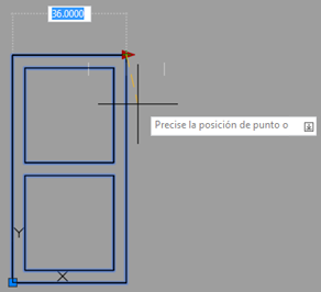 En un dibujo en blanco, dibuje un rectángulo de 36 x 72 para representar la ventana. Dibuje el rectángulo interior, como se muestra. Coloque la esquina inferior izquierda de la ventana a 0,0. Esta ubicación se utilizará como punto de inserción base del bloque.
