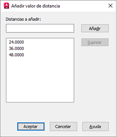 Añada 24 y 48 en el cuadro de diálogo Añadir valor de distancia y haga clic en Aceptar. El valor 36 se añade automáticamente porque es la longitud del parámetro lineal.