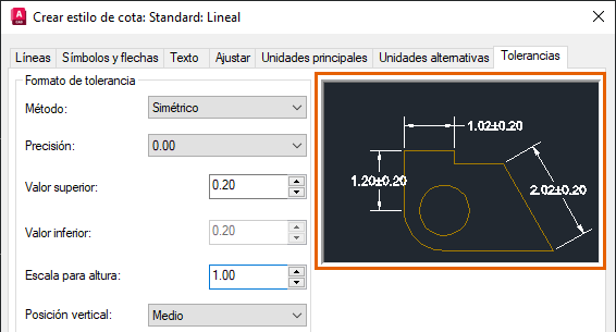 El área de vista preliminar se actualiza para mostrar la tolerancia en las cotas lineales.